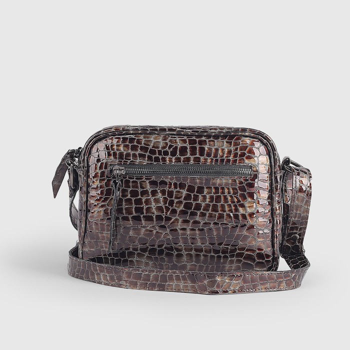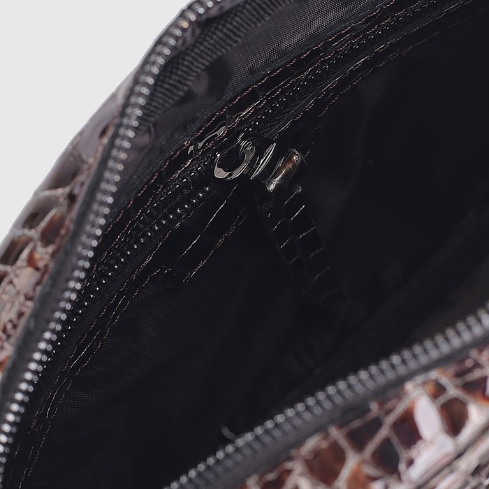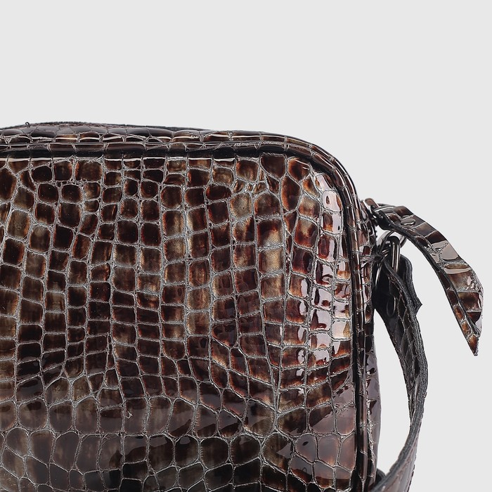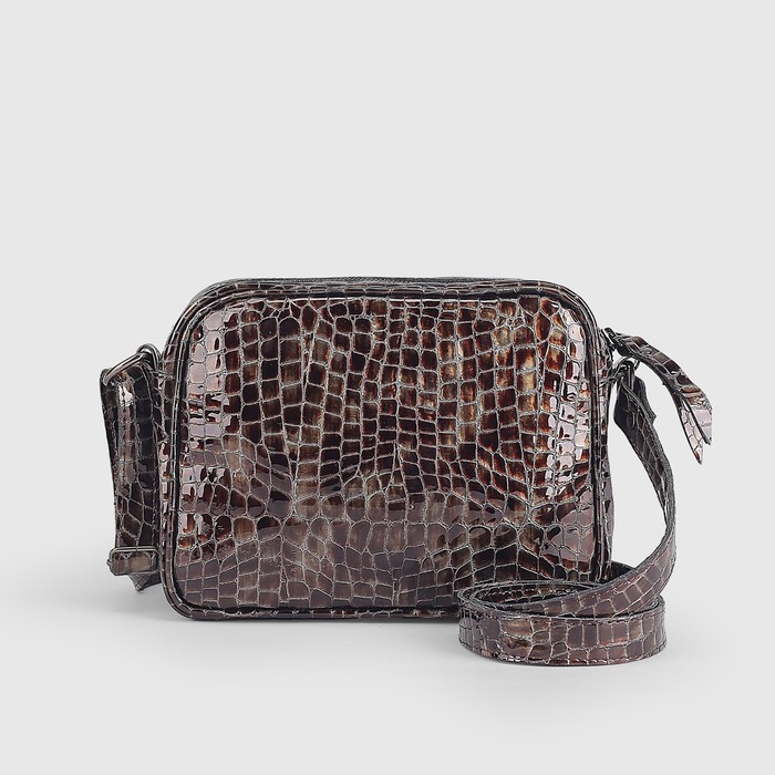 Сумка женская, отдел на молнии, длинный ремень, крокодил лак
