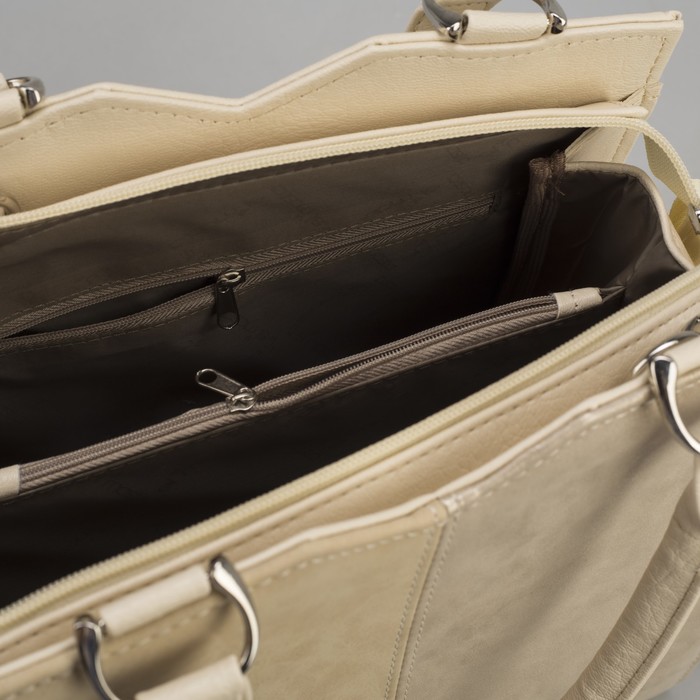 Сумка женская, отдел на молнии, наружный карман, длинный ремень, цвет бежевый