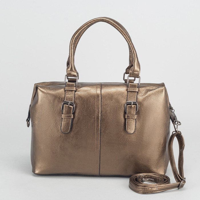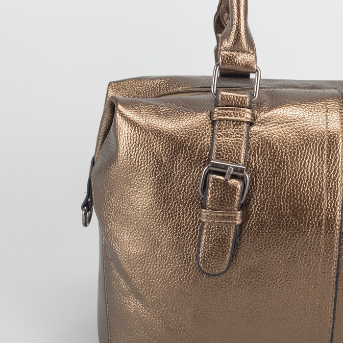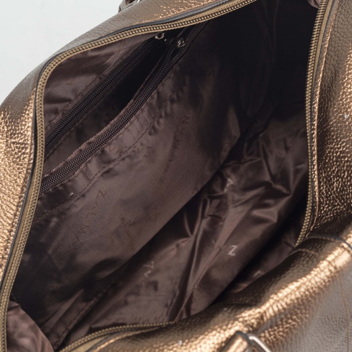Сумка женская, отдел на молнии, наружный карман, длинный ремень, цвет бронзовый