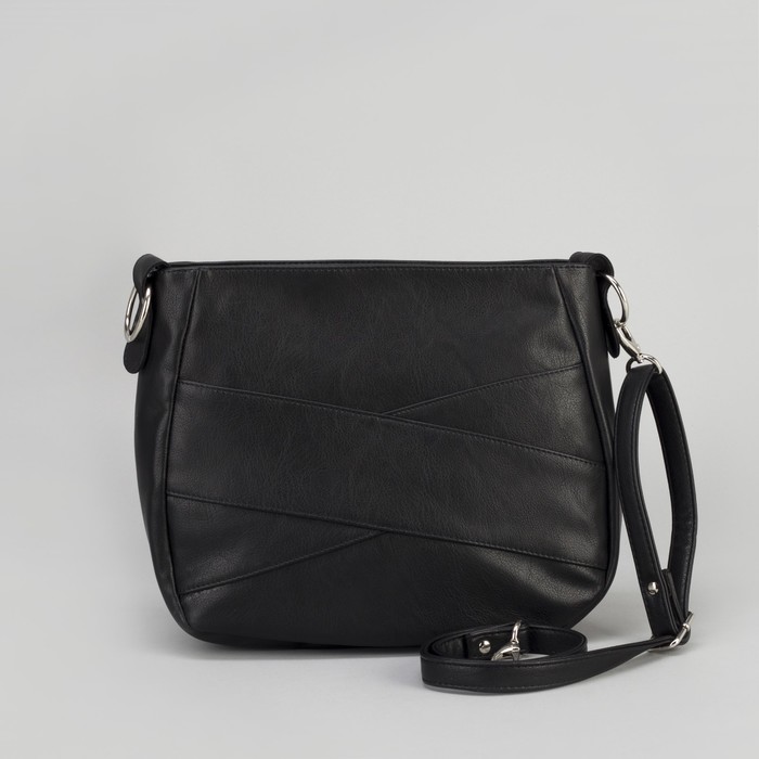 Сумка женская, отдел на молнии, наружный карман, длинный ремень, цвет чёрный