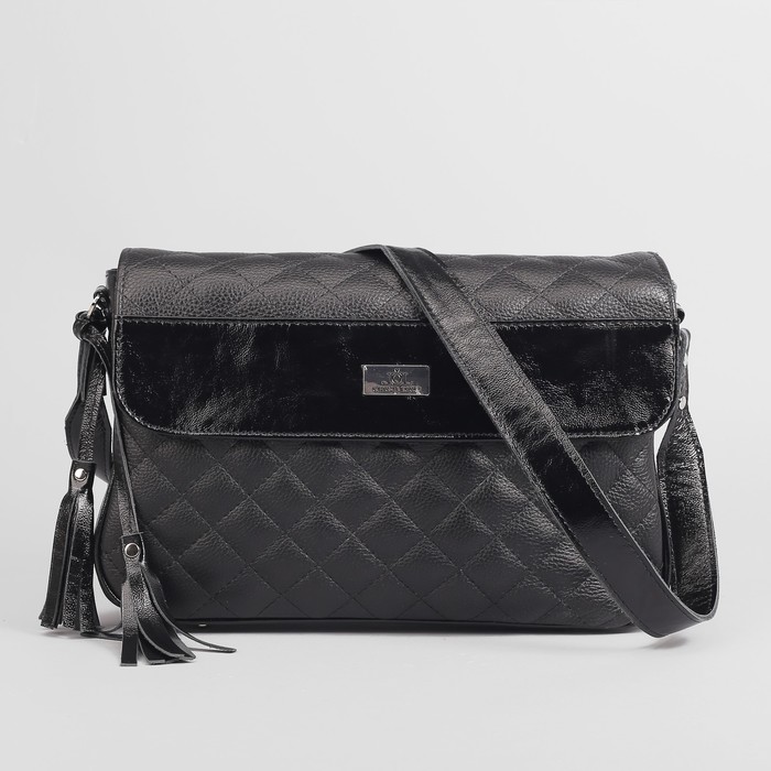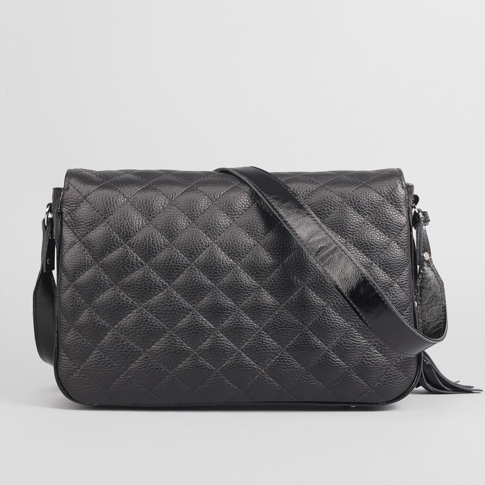 Сумка женская, отдел на молнии, наружный карман, длинный ремень, цвет чёрный