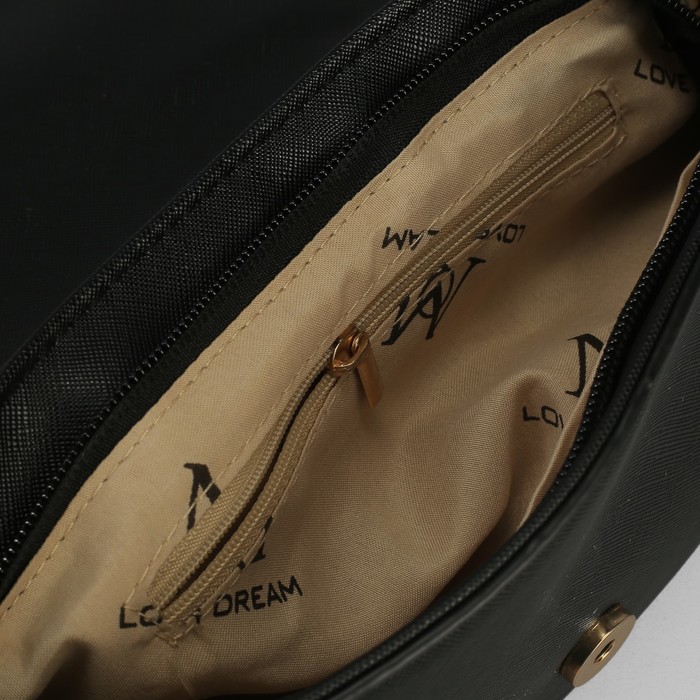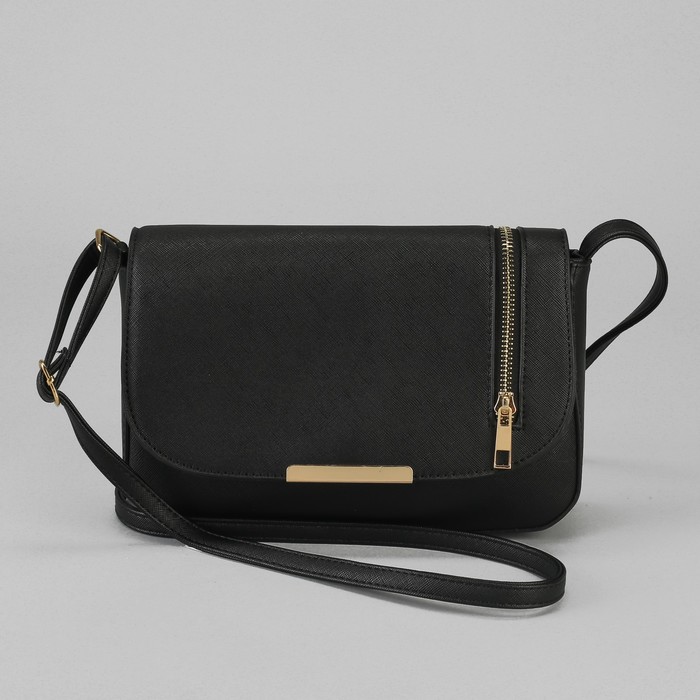 Сумка женская, отдел на молнии, наружный карман, длинный ремень, цвет чёрный
