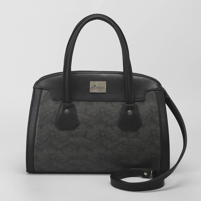 Сумка женская, отдел на молнии, наружный карман, длинный ремень, цвет чёрный/тёмно-серый