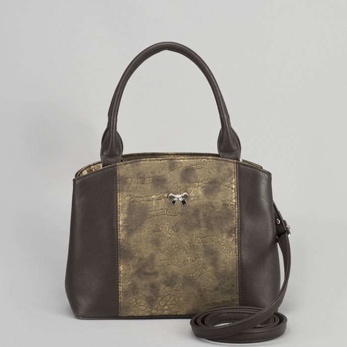 Сумка женская, отдел на молнии, наружный карман, длинный ремень, цвет коричневый/золотой