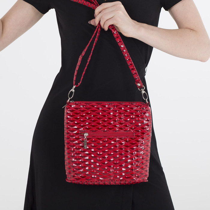 Сумка женская, отдел на молнии, наружный карман, длинный ремень, цвет красный