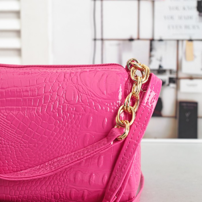 Сумка женская, отдел на молнии, наружный карман, длинный ремень, цвет малиновый