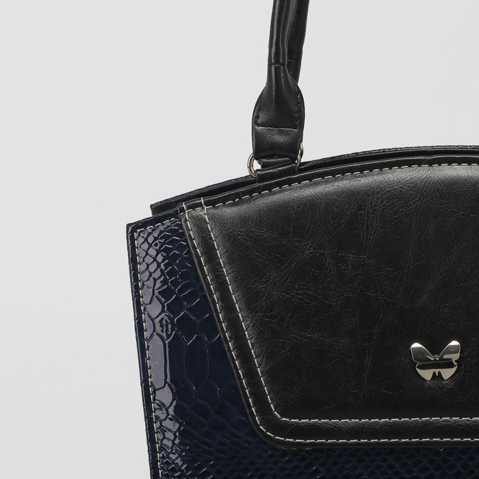 Сумка женская, отдел на молнии, наружный карман, длинный ремень, цвет тёмно-синий/чёрный