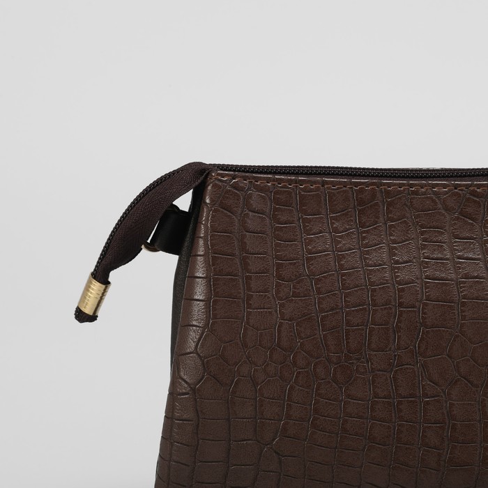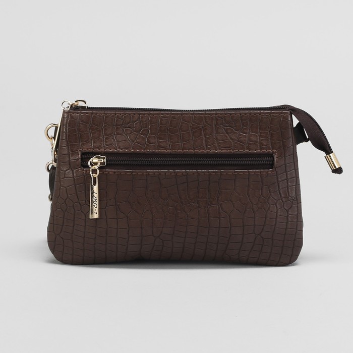 Сумка женская, отдел на молнии, наружный карман, длинный ремень, крокодил, цвет коричневый