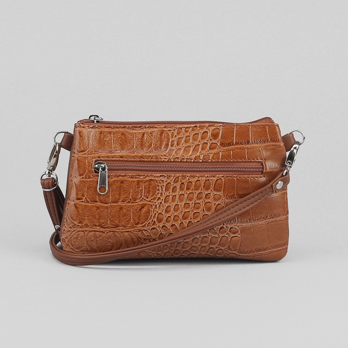 Сумка женская, отдел на молнии, наружный карман, длинный ремень, крокодил, цвет тёмно-бежевый