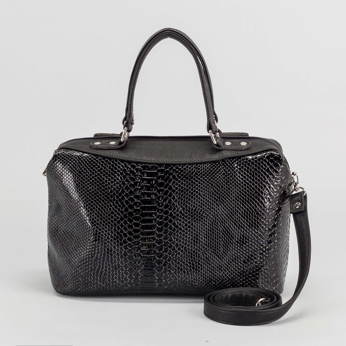 Сумка женская, отдел на молнии, наружный карман, длинный ремень, змея, цвет чёрный