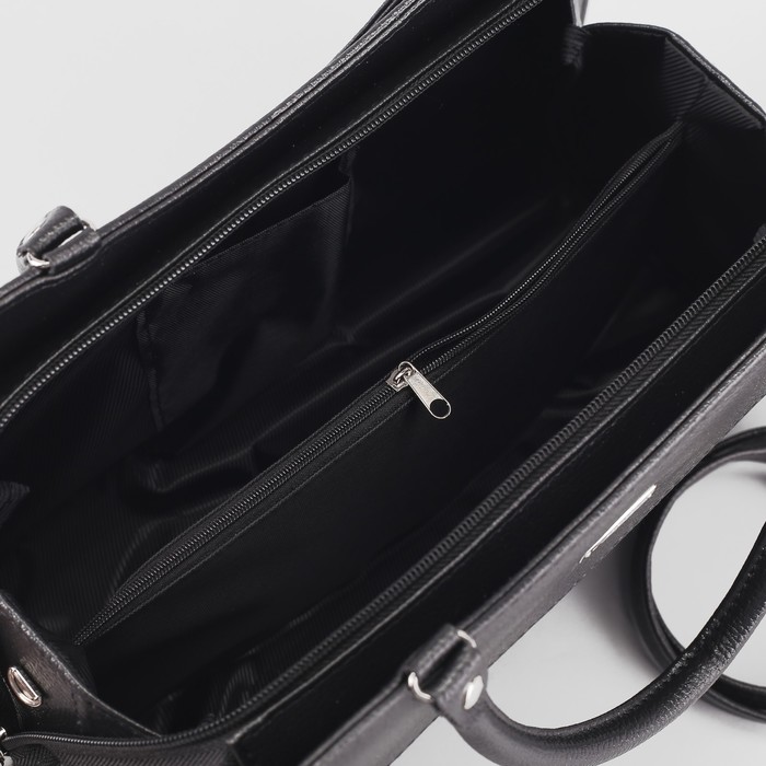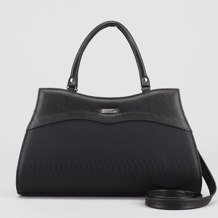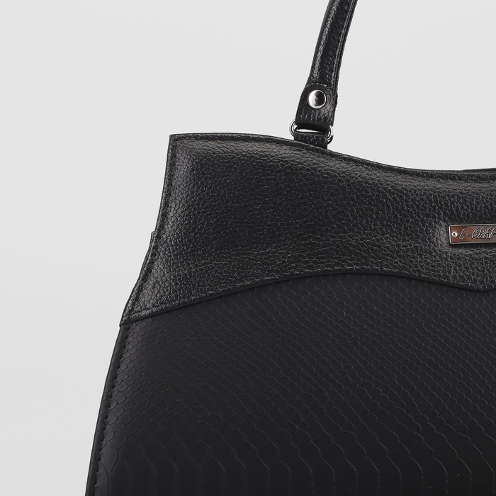 Сумка женская, отдел на молнии, наружный карман, длинный ремень, змея, цвет чёрный