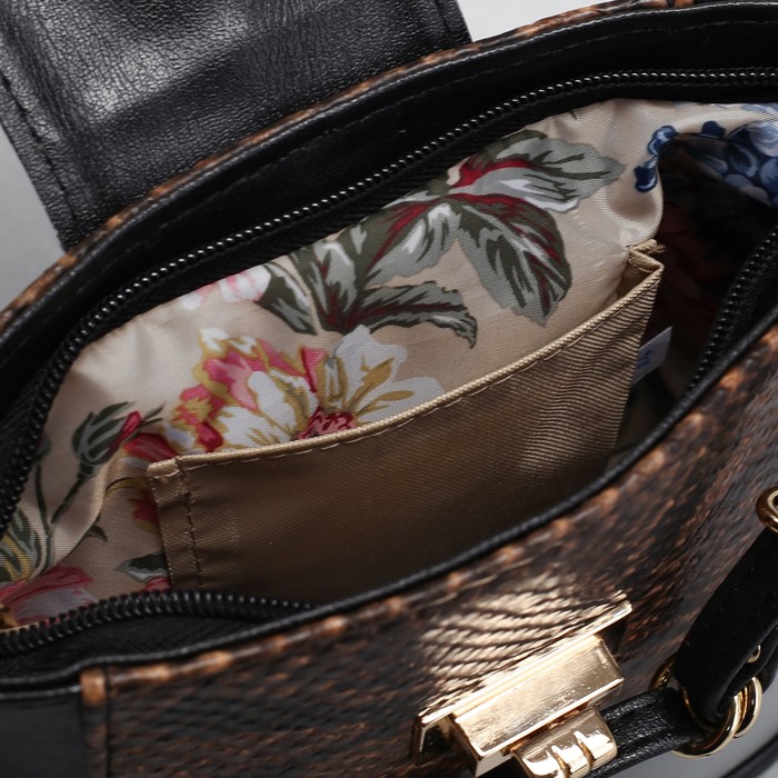 Сумка женская, отдел на молнии, наружный карман, кобра, цвет коричневый/чёрный