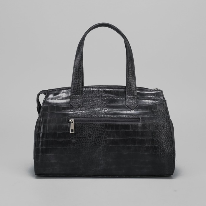 Сумка женская, отдел на молнии, наружный карман, крокодил, цвет серый