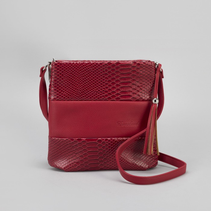 Сумка женская, отдел на молнии, наружный карман, регулируемый ремень, цвет красный