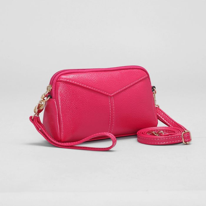 Сумка женская, отдел на молнии, наружный карман, регулируемый ремень, цвет малиновый