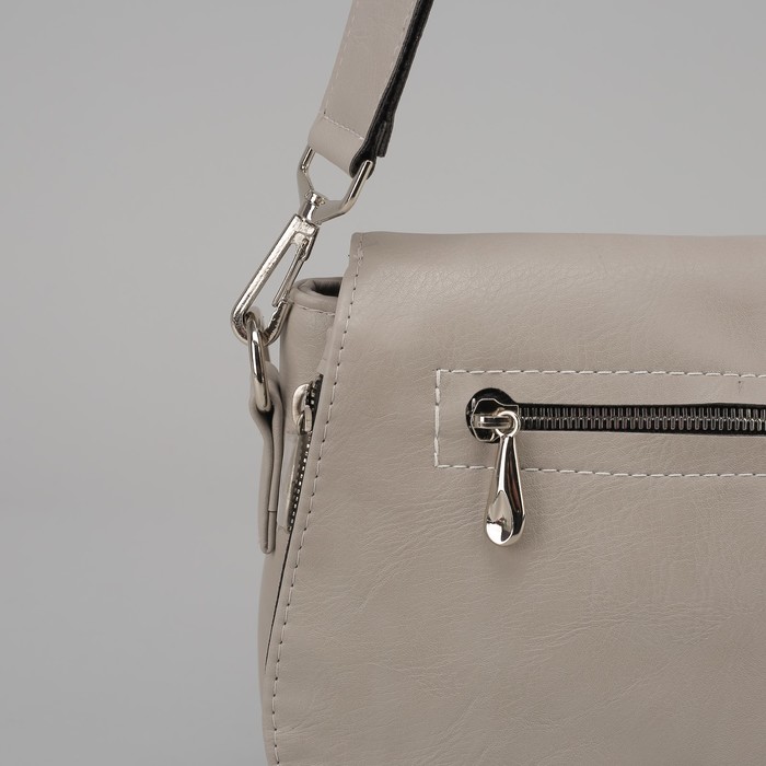 Сумка женская, отдел на молнии, наружный карман, регулируемый ремень, цвет серый/бежевый