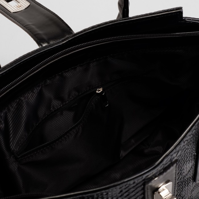 Сумка женская, отдел на молнии, наружный карман, змея, цвет чёрный