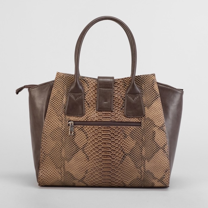 Сумка женская, отдел на молнии, наружный карман, змея, цвет тёмно-бежевый/коричневый