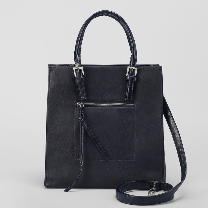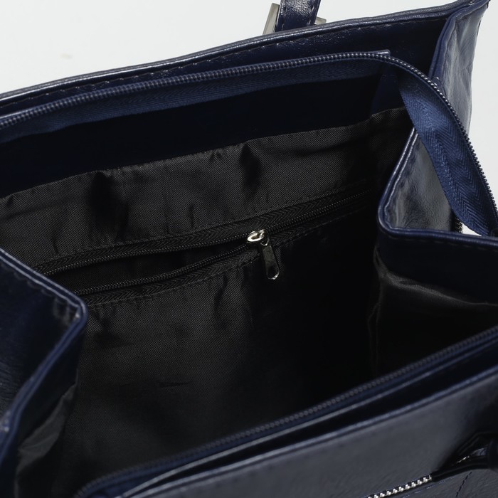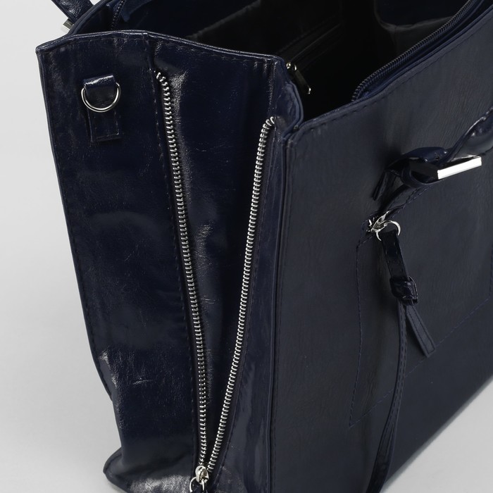 Сумка женская, отдел на молнии, расширение, 2 наружных кармана, длинный ремень, цвет синий