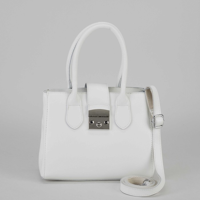 Сумка женская, отдел на молнии, с расширением, наружный карман, длинный ремень, цвет белый