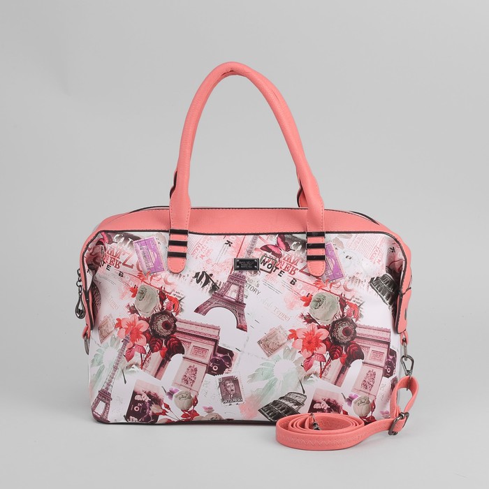 Сумка женская, отдел, наружный карман, длинный ремень, цвет розовый