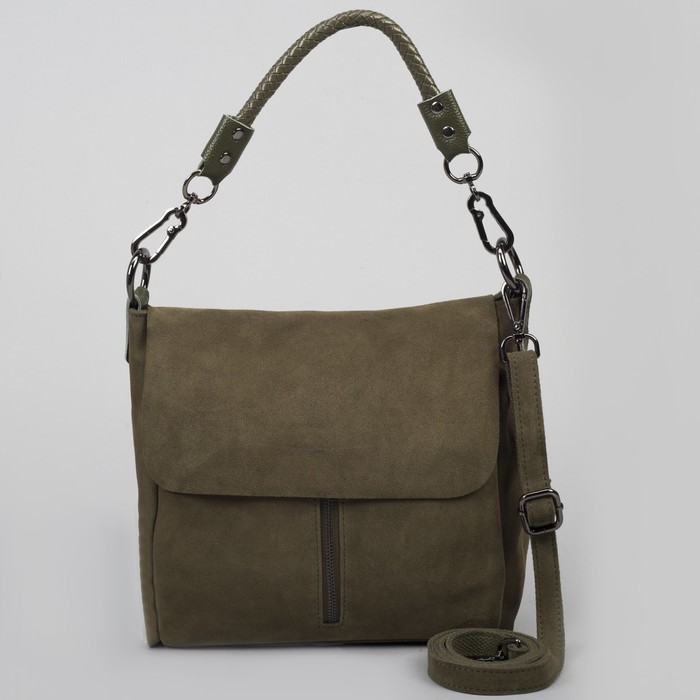 Сумка женская, отдел с перегородкой, 2 наружных кармана, длинный ремень, цвет оливковый