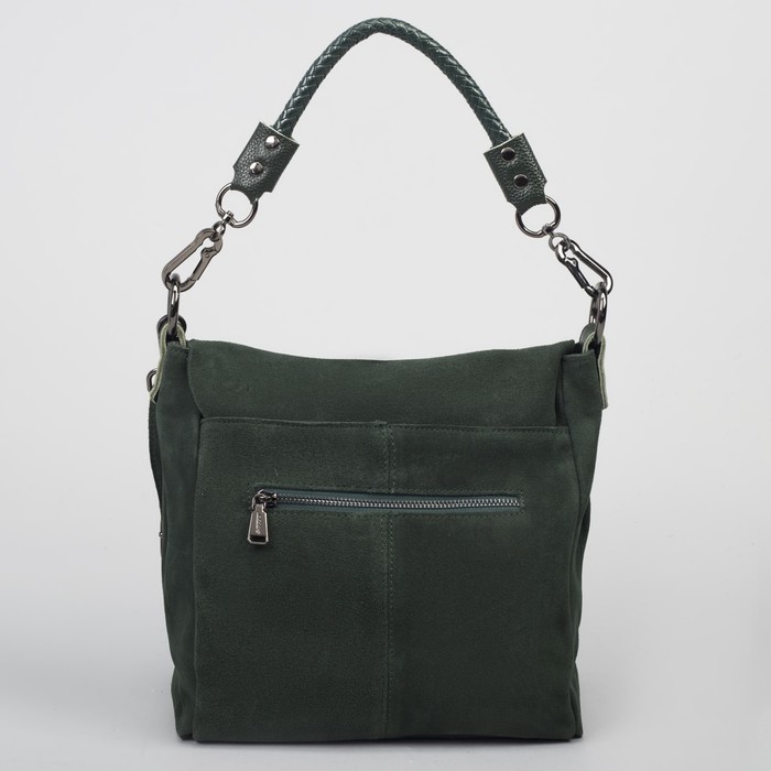 Сумка женская, отдел с перегородкой, 2 наружных кармана, длинный ремень, цвет зелёный