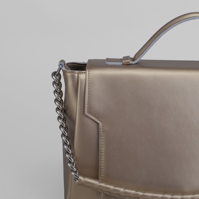 Сумка женская, отдел с перегородкой, длинный ремень, наружный карман, цвет золотой
