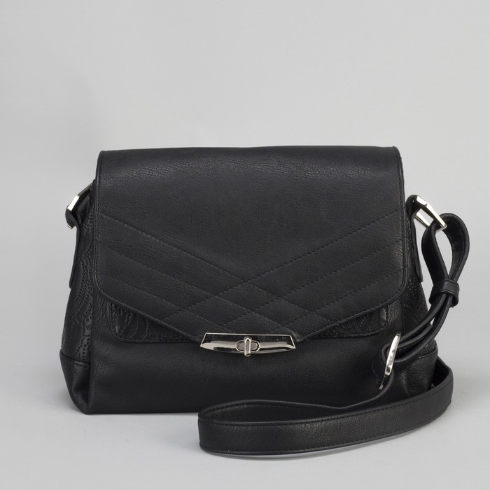 Сумка женская, отдел с перегородкой на клапане, регулируемый ремень, цвет чёрный