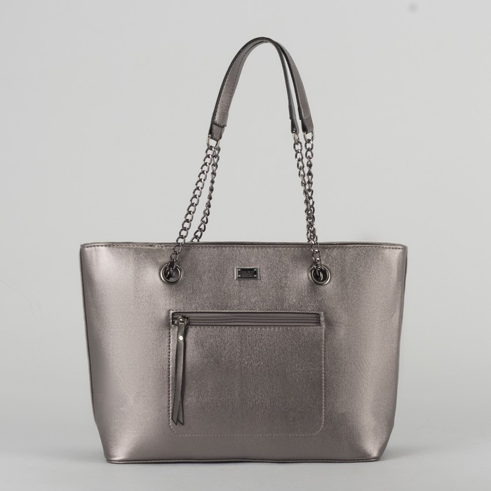 Сумка женская, отдел с перегородкой на молнии, 2 наружных кармана, цвет серебристый