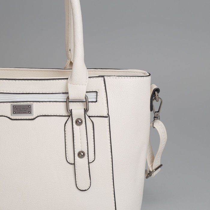 Сумка женская, отдел с перегородкой на молнии, 2 наружных кармана, длинный ремень, цвет белый