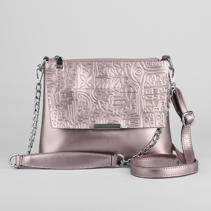 Сумка женская, отдел с перегородкой на молнии, 2 наружных кармана, длинный ремень, цвет бронзовый