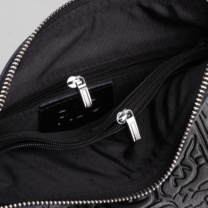 Сумка женская, отдел с перегородкой на молнии, 2 наружных кармана, длинный ремень, цвет чёрный