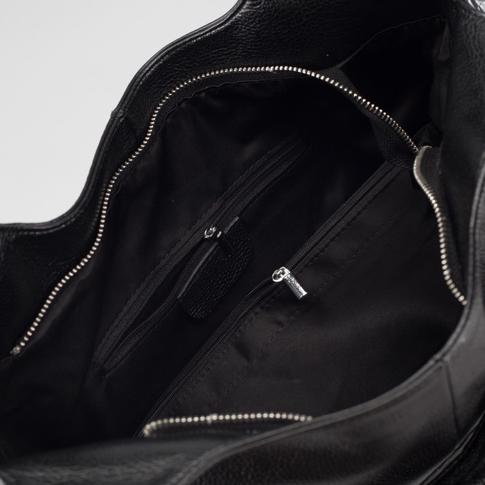 Сумка женская, отдел с перегородкой на молнии, 2 наружных кармана, длинный ремень, цвет чёрный