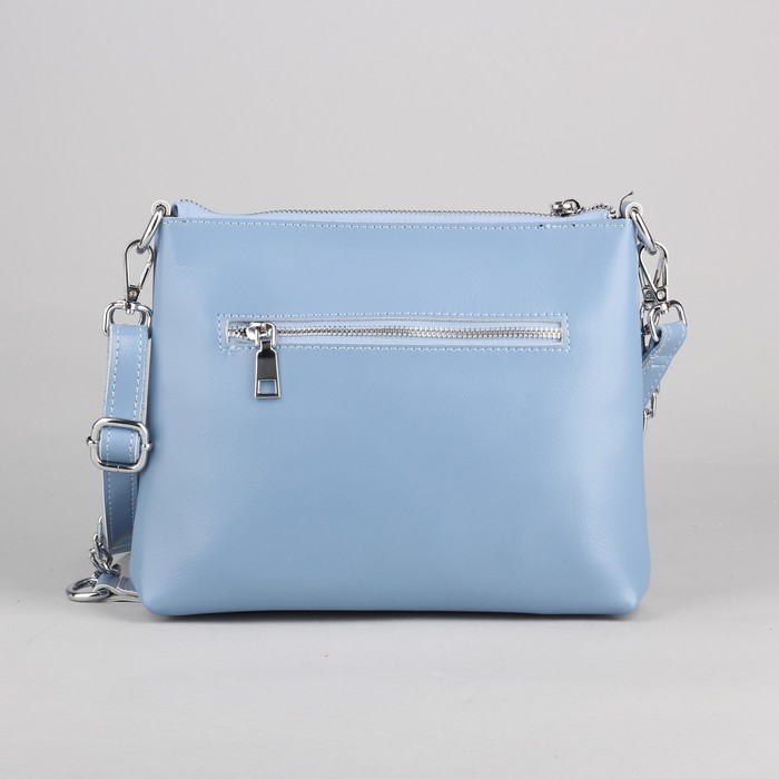 Сумка женская, отдел с перегородкой на молнии, 2 наружных кармана, длинный ремень, цвет голубой
