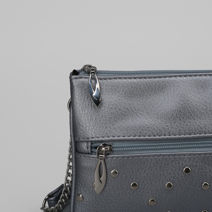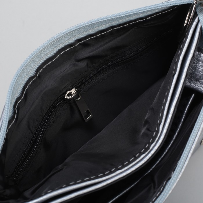Сумка женская, отдел с перегородкой на молнии, 2 наружных кармана, длинный ремень, цвет серебристый