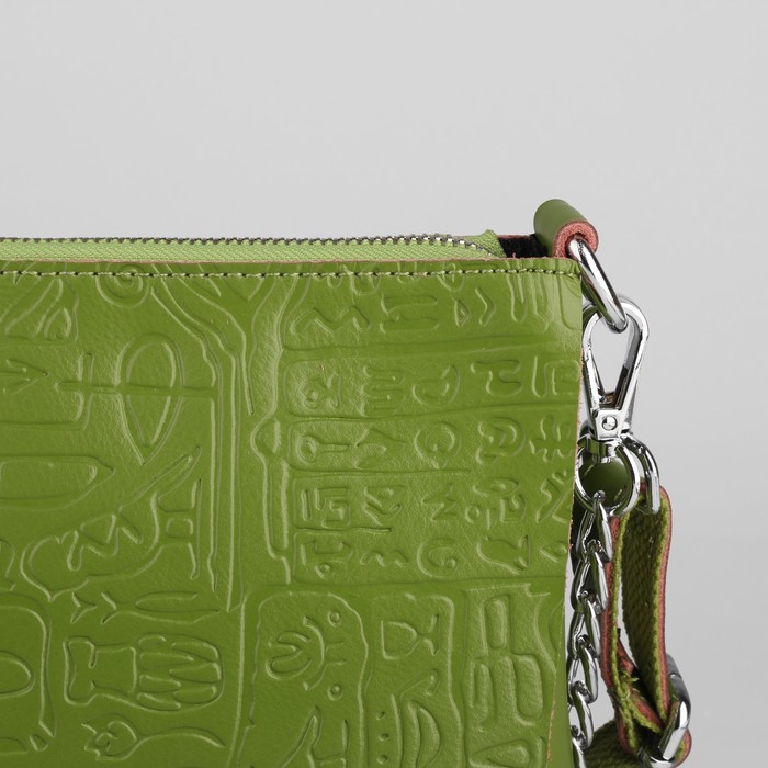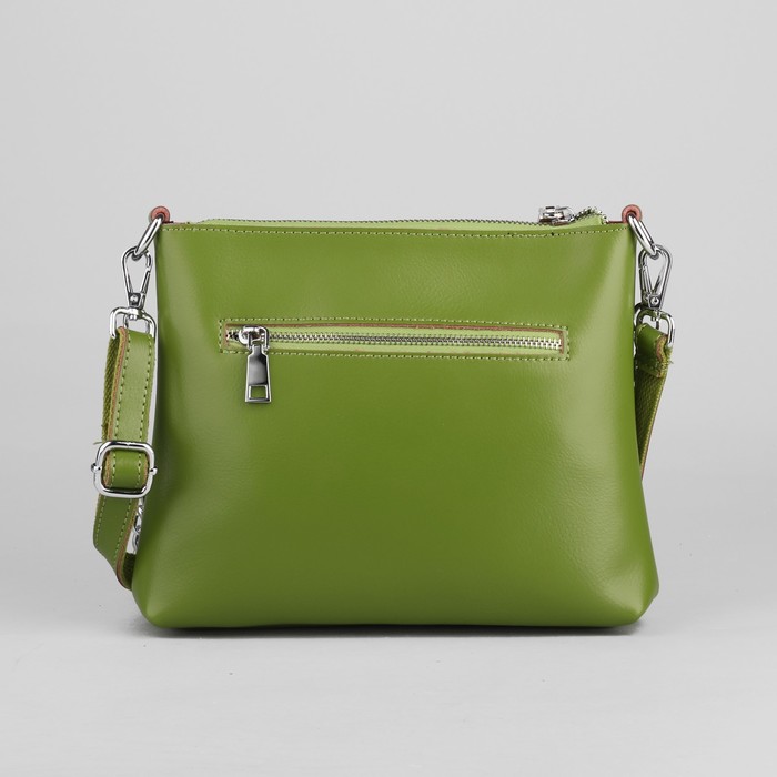 Сумка женская, отдел с перегородкой на молнии, 2 наружных кармана, длинный ремень, цвет светло-зелёный
