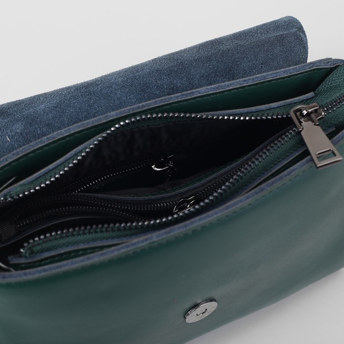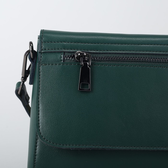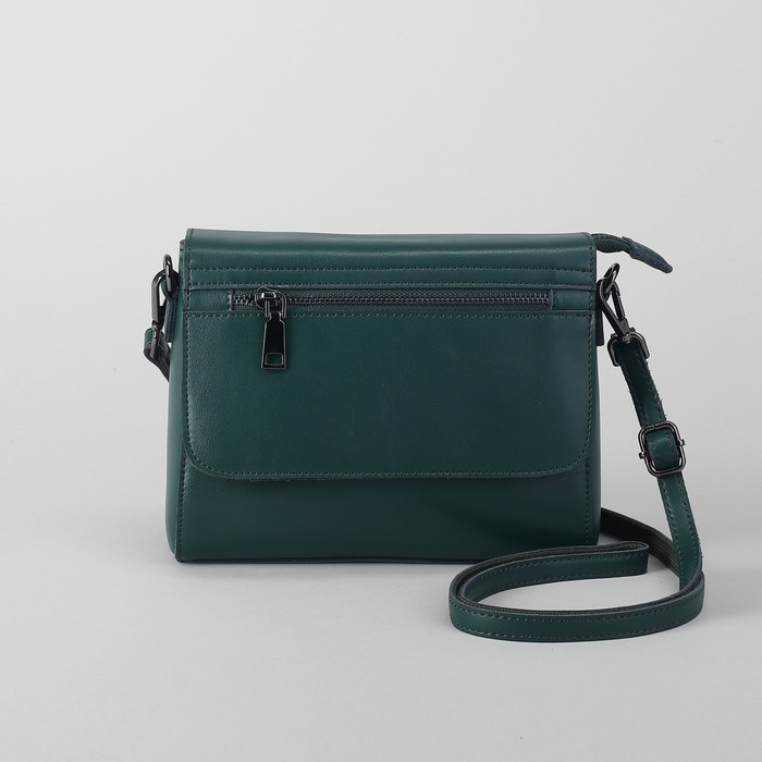 Сумка женская, отдел с перегородкой на молнии, 2 наружных кармана, длинный ремень, цвет зелёный