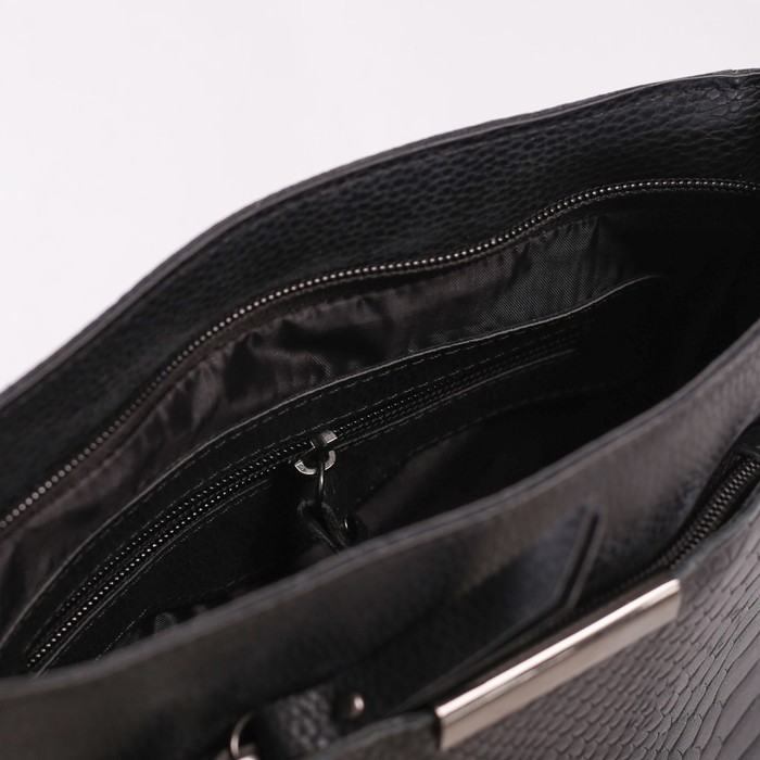 Сумка женская, отдел с перегородкой на молнии, 2 наружных кармана, питон, цвет чёрный матовый