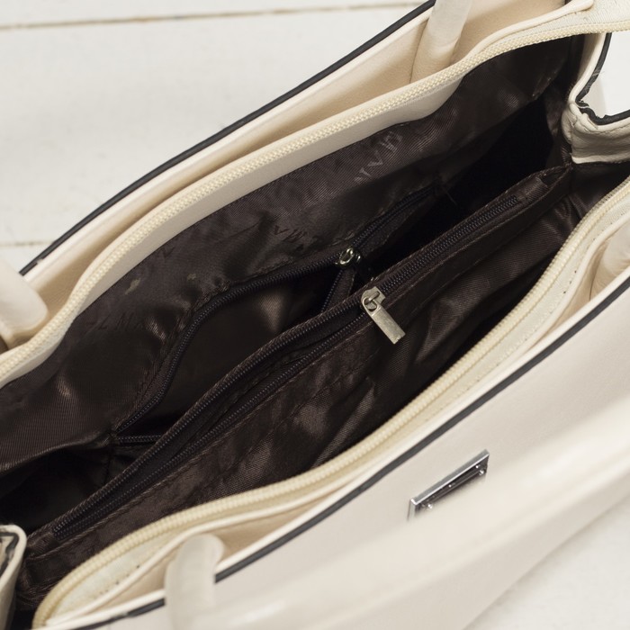 Сумка женская, отдел с перегородкой на молнии, 3 наружных кармана, длинный ремень, цвет бежевый