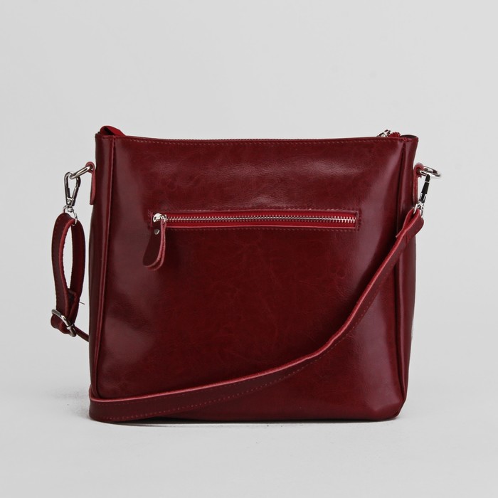 Сумка женская, отдел с перегородкой на молнии, 3 наружных кармана, длинный ремень, цвет бордовый