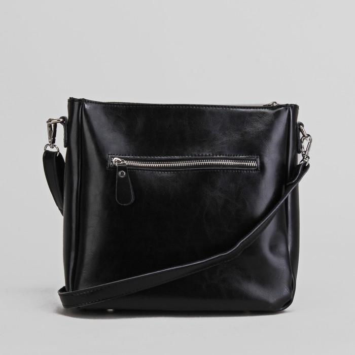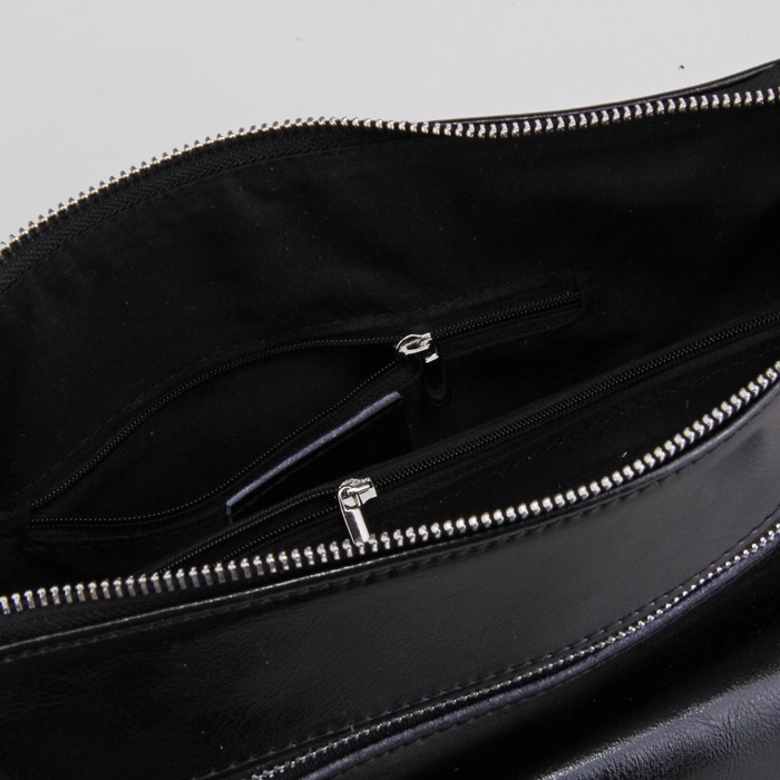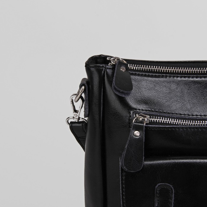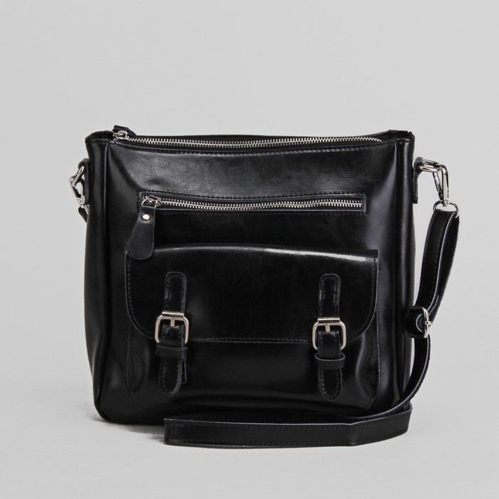 Сумка женская, отдел с перегородкой на молнии, 3 наружных кармана, длинный ремень, цвет чёрный