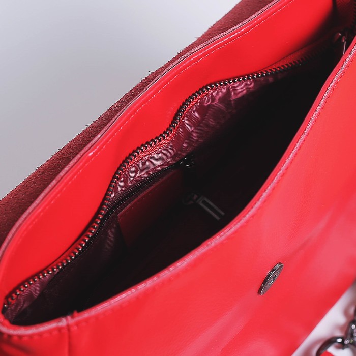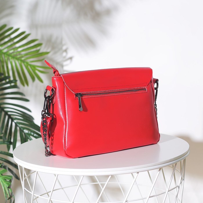 Сумка женская, отдел с перегородкой на молнии, 3 наружных кармана, длинный ремень, цвет красный