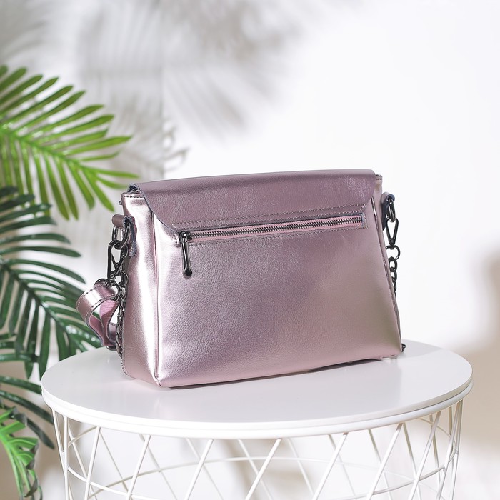 Сумка женская, отдел с перегородкой на молнии, 3 наружных кармана, длинный ремень, цвет пудровый