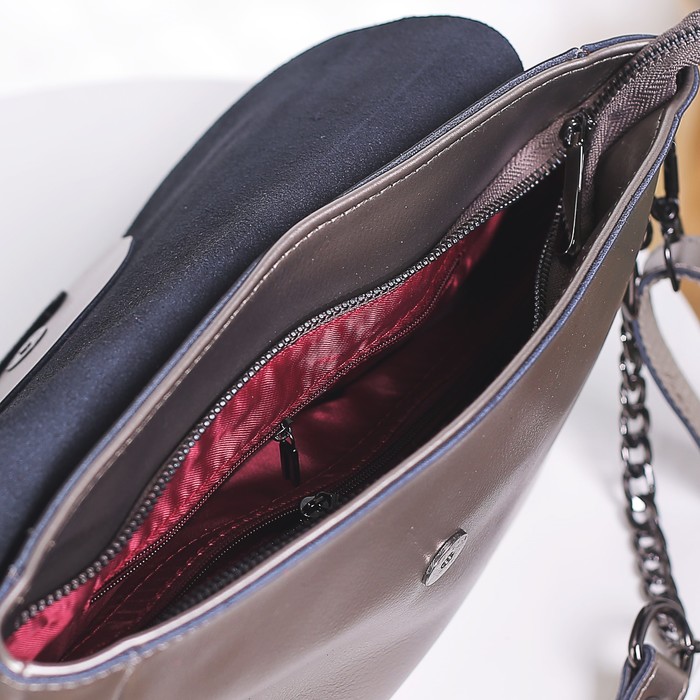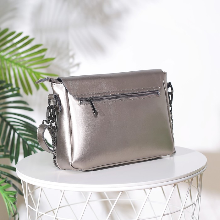 Сумка женская, отдел с перегородкой на молнии, 3 наружных кармана, длинный ремень, цвет серебристый