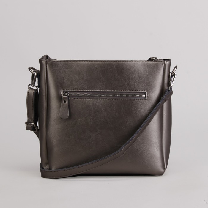 Сумка женская, отдел с перегородкой на молнии, 3 наружных кармана, длинный ремень, цвет серебристый