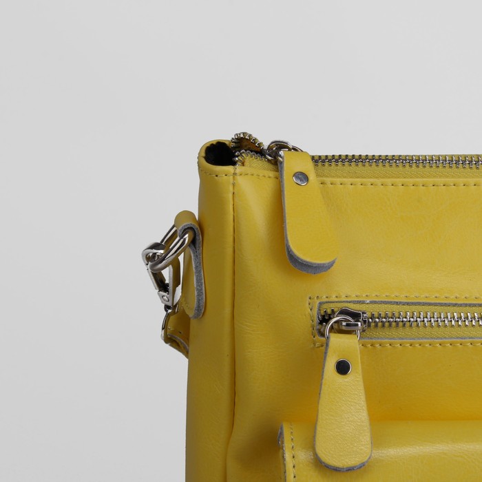 Сумка женская, отдел с перегородкой на молнии, 3 наружных кармана, длинный ремень, цвет жёлтый