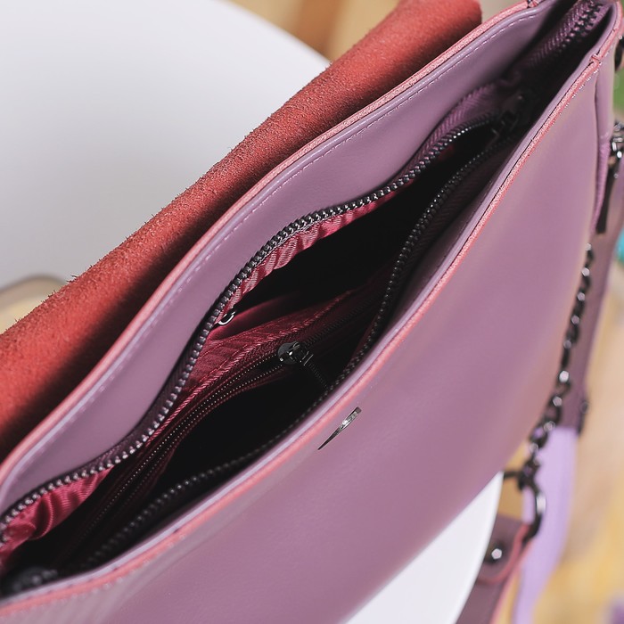 Сумка женская, отдел с перегородкой на молнии, 3 наружных кармана, длинный ремень, розовый перламутр