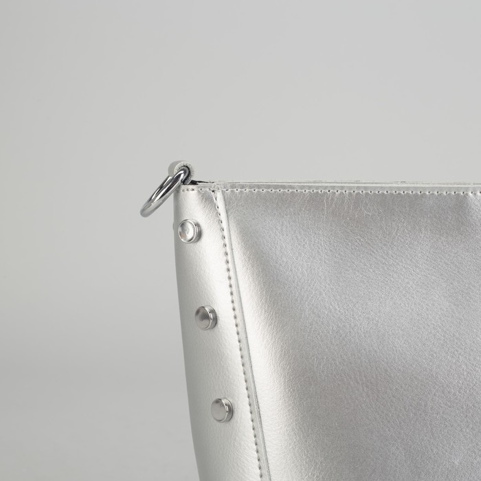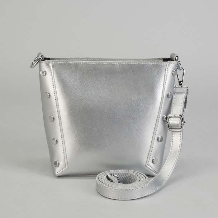 Сумка женская, отдел с перегородкой на молнии, длинный ремень, цвет серебристый