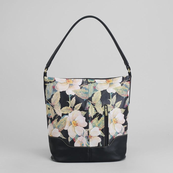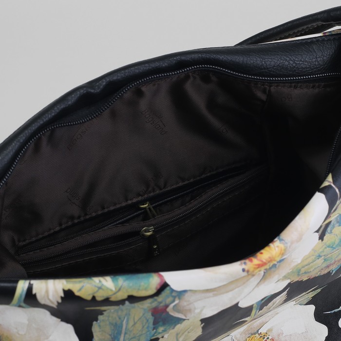 Сумка женская, отдел с перегородкой на молнии, наружный карман, цвет чёрный/бежевый